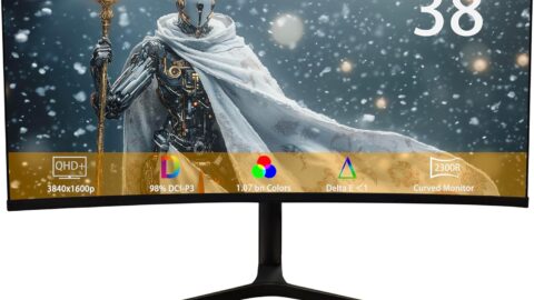 38 Inch UWQHD+ Curved Monitor, 3840 x 1600p 1.07 Billion Colors 98% DCI-P3, 100% sRGB, 10 Bit (8bit+A-FRC) Color Depth, Eyecare Technology Adaptive-Sync 60Hz R2300 Frameless Computer Monitor